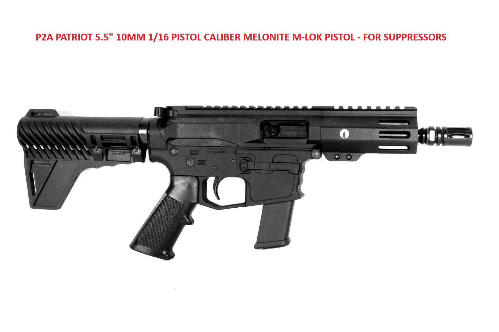 P2A PATRIOT 5.5″ 10mm 1/16 Pistol Caliber Melonite M-LOK Pistol – For Suppressors UPPER RECEIVER: AR-15/AR-40 Mil-Spec Machined out of Billet Aluminum, For Pistol Calibers, Type III Hardcoat Anodized Black – No Forward Assist or Ejection Port Cover Needed BARREL: 5.5 inch, 10mm Caliber, 4150 Chrome Moly Vanadium Steel, 1:16 Twist, Nitride/Melonite Treated – made…